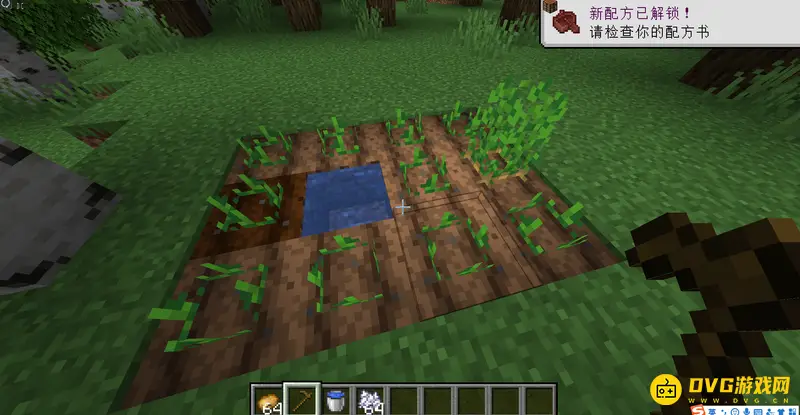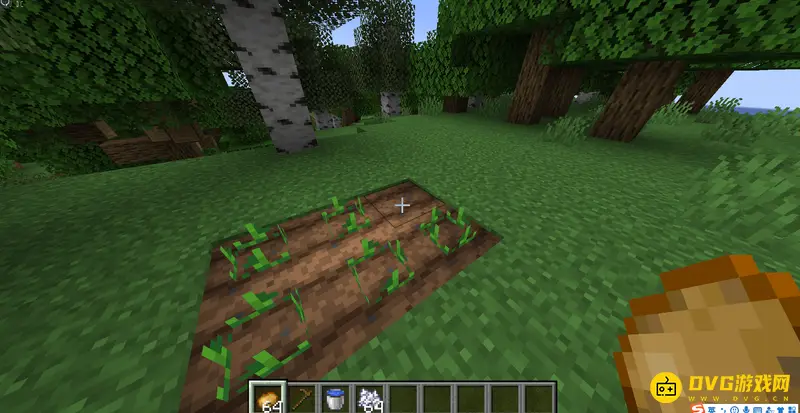 拿出土豆对开垦过的土地点击右键即可将土豆种植上去: