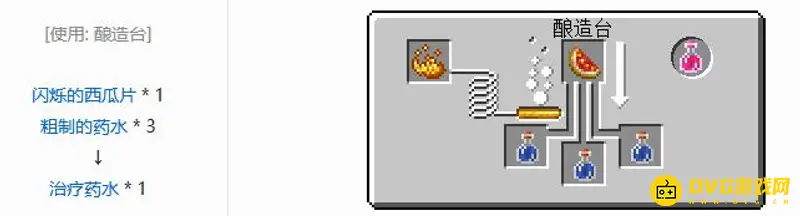 用闪烁的西瓜片和三个粗制药水就可以酿造成生命恢复药水了。
