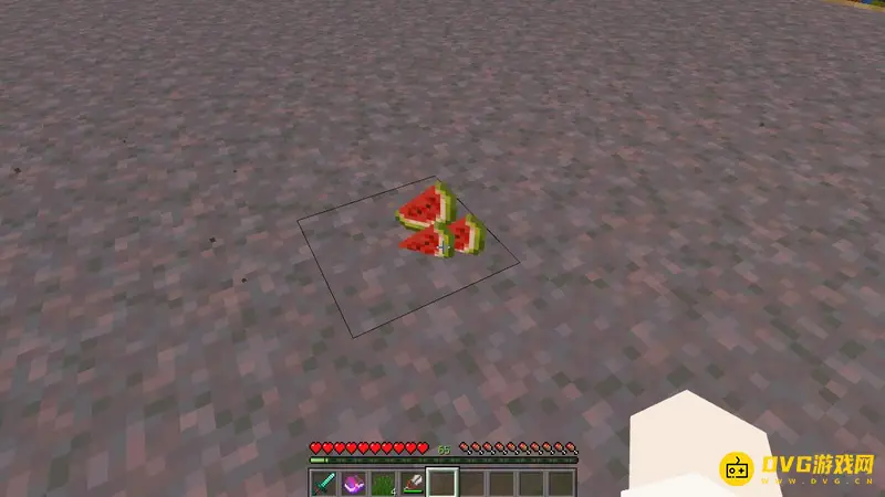 1,首先我们可以放置一个西瓜在地面上,然后点击鼠标左键破坏西瓜。