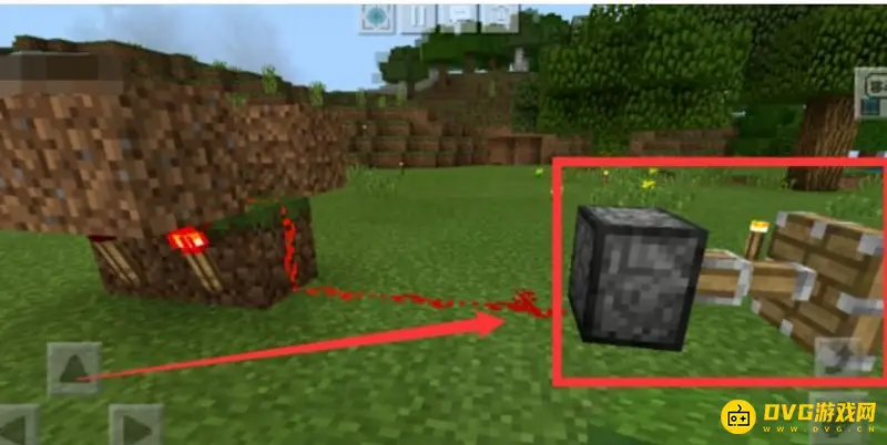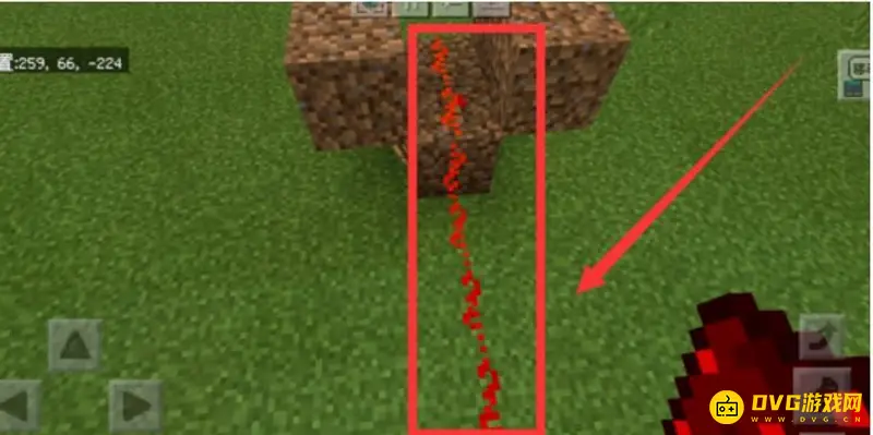 7、在中间一列的泥土上放上红石。