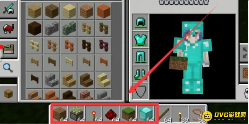 4、将需要的泥土,粘性活塞,红石火把,红石,草方块等物品选出来备用。