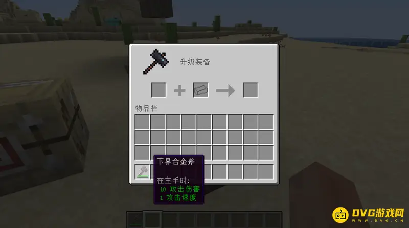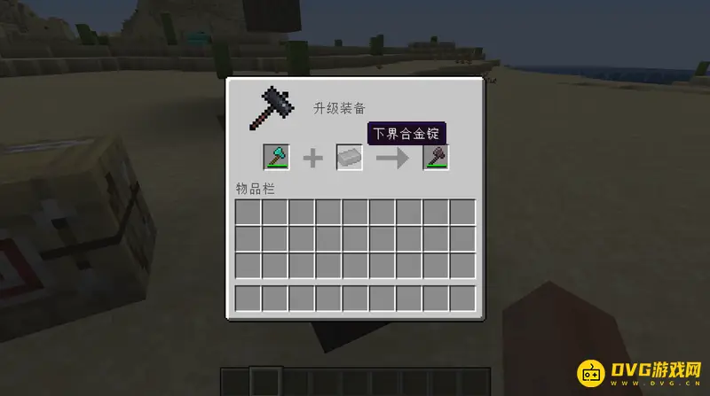 1、进入游戏,玩家打开锻造台,放入自己的装备,装备必须是钻石装备,然后再放入下界合金锭,可以看到可以升级为下界合金装备。