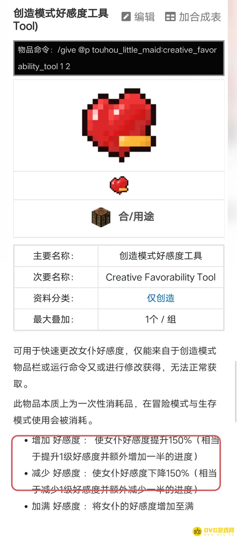 使用创造模式好感度工具。使女仆好感度提升150%,效果十分明显。可用于快速更改女仆好感度,仅能来自于创造模式物品栏或运行命令又或进行修改获得,无法正常获取。