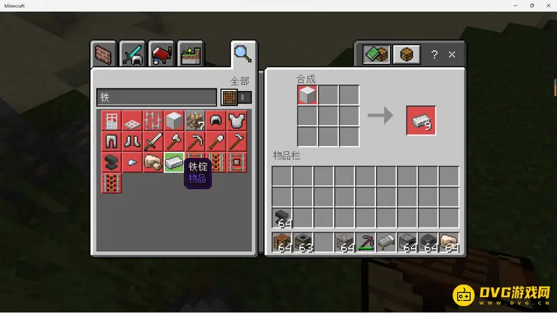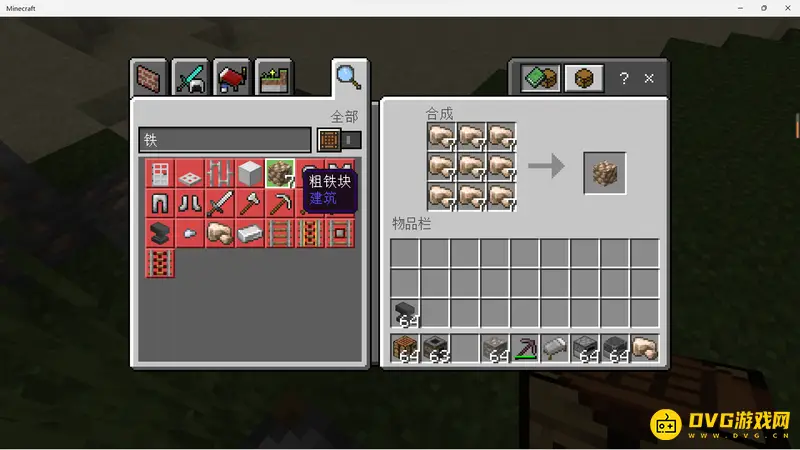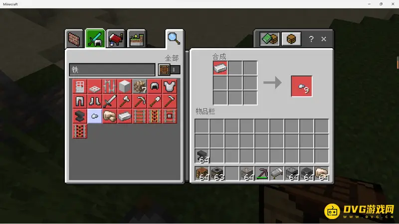 铁块可以用九块铁锭合成,反之一块铁锭也可以分解为九块铁锭