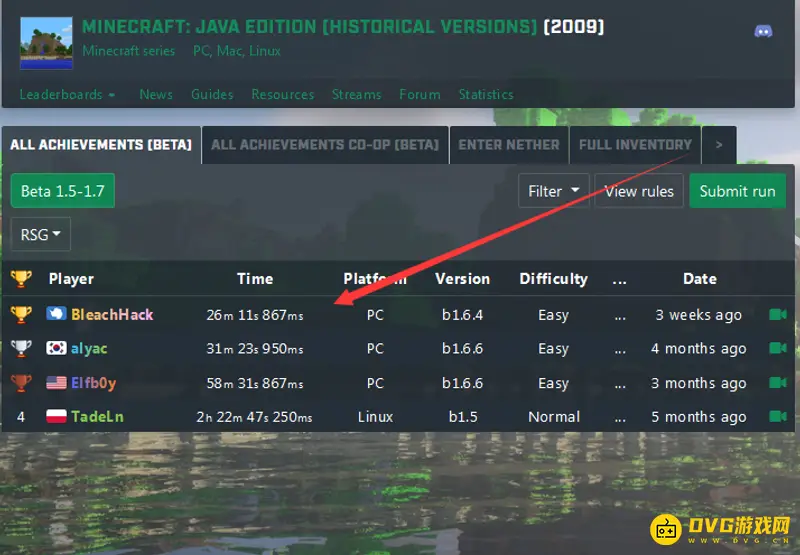 3.点击你想要的版本进去,就可以看到速通的世界纪录了。