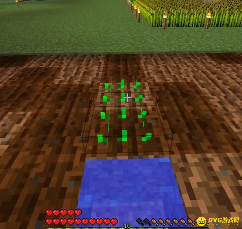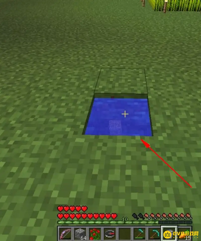 2,在水的周围,直径为四个格,用锄头右键开出一块地