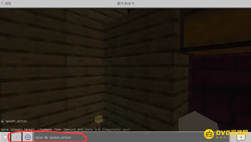 1,首先我们打开游戏聊天框,输入获取物品的指令加上喷溅药水的代码splash_potion。