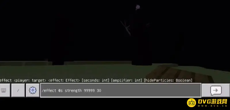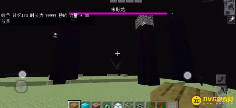 我们在游戏聊天输入指令‘/effect @s strength 99999 30'(@s是玩家本人),然后我们可以获得一个为期30秒钟的99999的力量,可以一拳打爆末影龙。