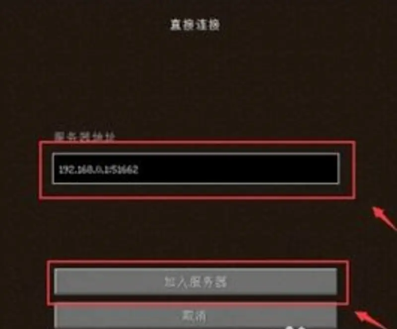 4.然后我们输入ip地址和开放端口号码,输完加入服务器就可以了,这样我的世界就可以联机了。
