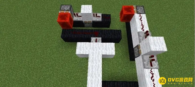 2、第二步:如图所示铺设红石电路和红石元件。注意,活塞总共有四个,所有的活塞都是粘性活塞。