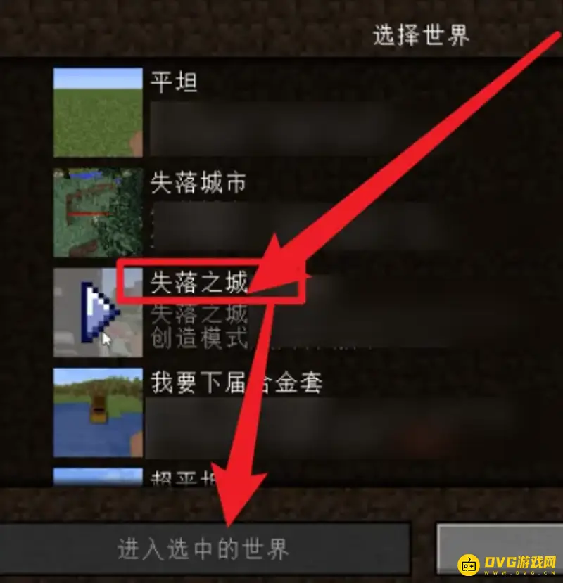 点击【单人游戏】进入选择世界,选择【失落之城】,点击【进入选中的世界】完成加载即可。