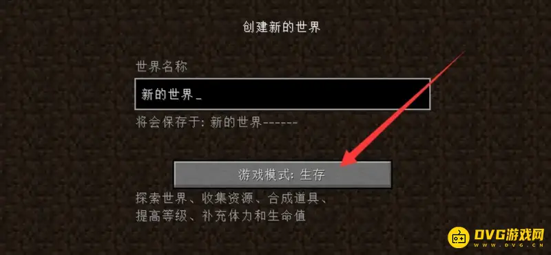 3.在创建新的界面,有一个模式,选择生存,接着进入游戏即可。