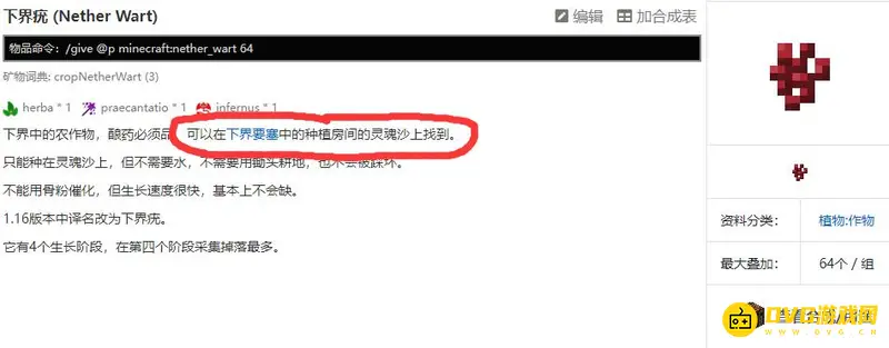 可以在下界要塞中的种植房间的灵魂沙上找到。