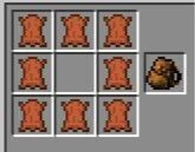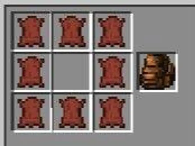 3、若想换成大背包,则需要用皮革和蜘蛛丝合成一种带线的皮革,再放在熔炉里面烧成暗色皮革,再用8个暗色的皮革合成大背包。大背包的容量比小背包多一倍。