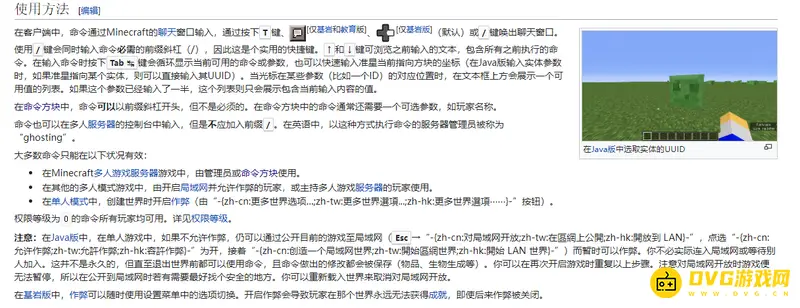 在客户端中,命令通过Minecraft的聊天窗口输入,通过按下T键(默认)或/键唤出聊天窗口。使用/键会同时输入命令必需的前缀斜杠(/),因此这是个实用的快捷键。
