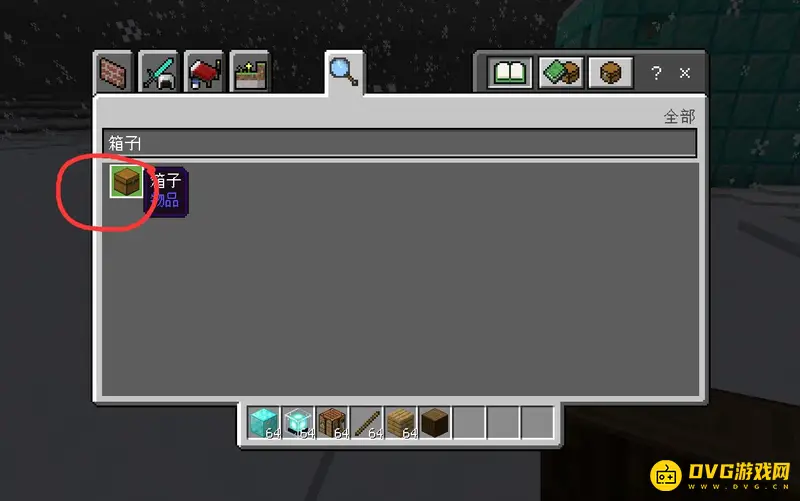 1,首先我们开启创造模式,搜索并拿取一组箱子。