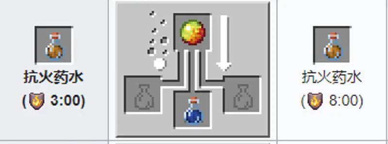 材料:粗制的药水 岩浆球。药水效果:可得到火苗抵御Buff,没法应用莹石。