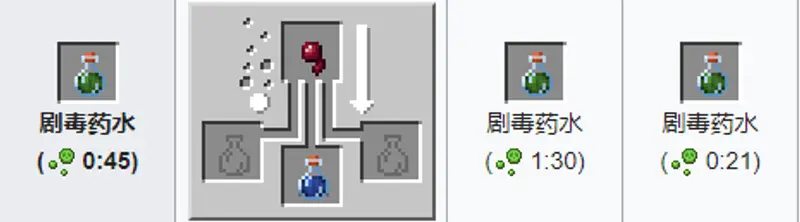 材料:蜘蛛眼 粗制药水。药水效果:在特殊时间内令小伙伴们中毒,生命降低至半个4,每1.5秒少一个半心,添加莹石提高效果,时间递减。