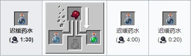 材料:发醇的蛛眼 速度药水或抗火药水。药水效果:缓解目标速度,等同于玩家背刺的速度。应用莹石能够提高效果。