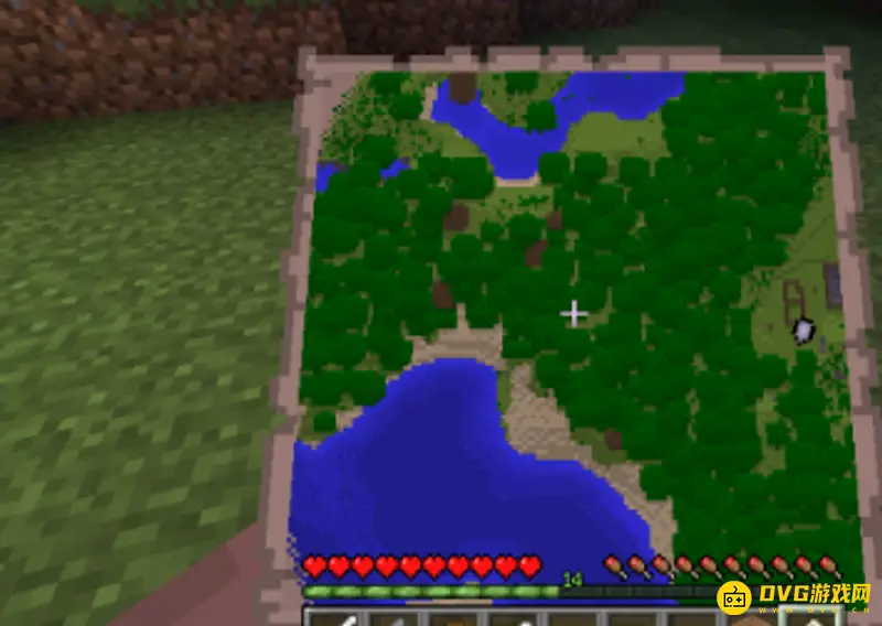 4.完成后,将地图放入物品栏,切换至手中就会显示小地图。