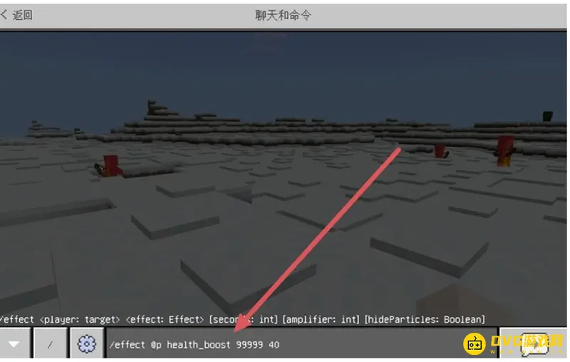 玩家可以使用指令让自己的血量变多,我们在聊天框里输入/effect @p health_boost 99999 40,第一个数字是持续时间,第二个数字是增加的血量。