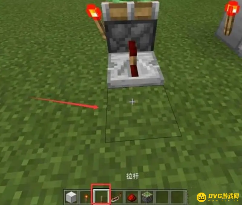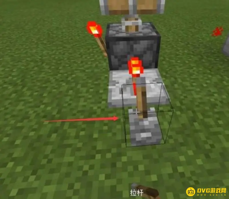 4.将拉杆放好后,只要点击拉杆就可以控制红石火把的亮度了。