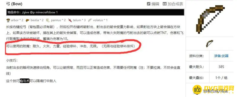 2.所以我的世界满配弓属性为火矢1,耐久3,无限1,力量5和冲击2,可以把无限换成经验修补。