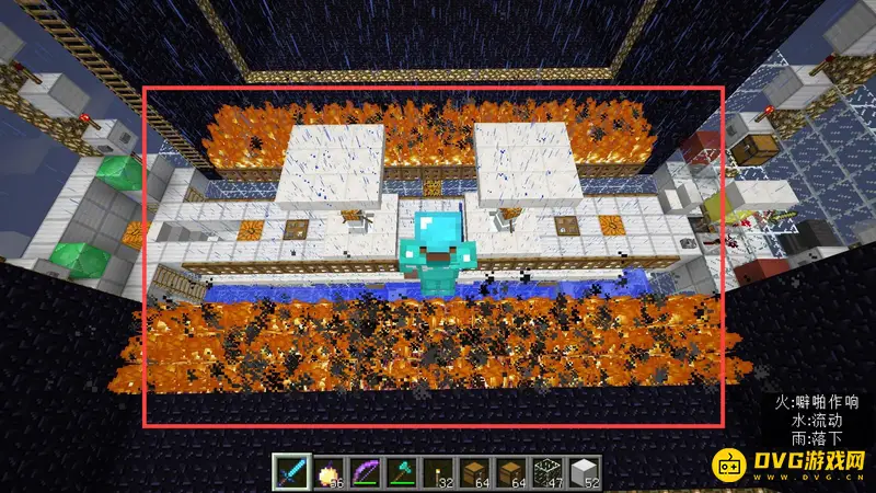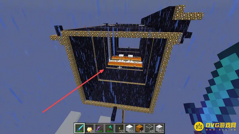 3、下图中绿色方块旁边的按钮用于打开传送门,红色方块旁边的按钮用于关闭传送门。这样即可成功制造僵尸猪人刷怪塔。
