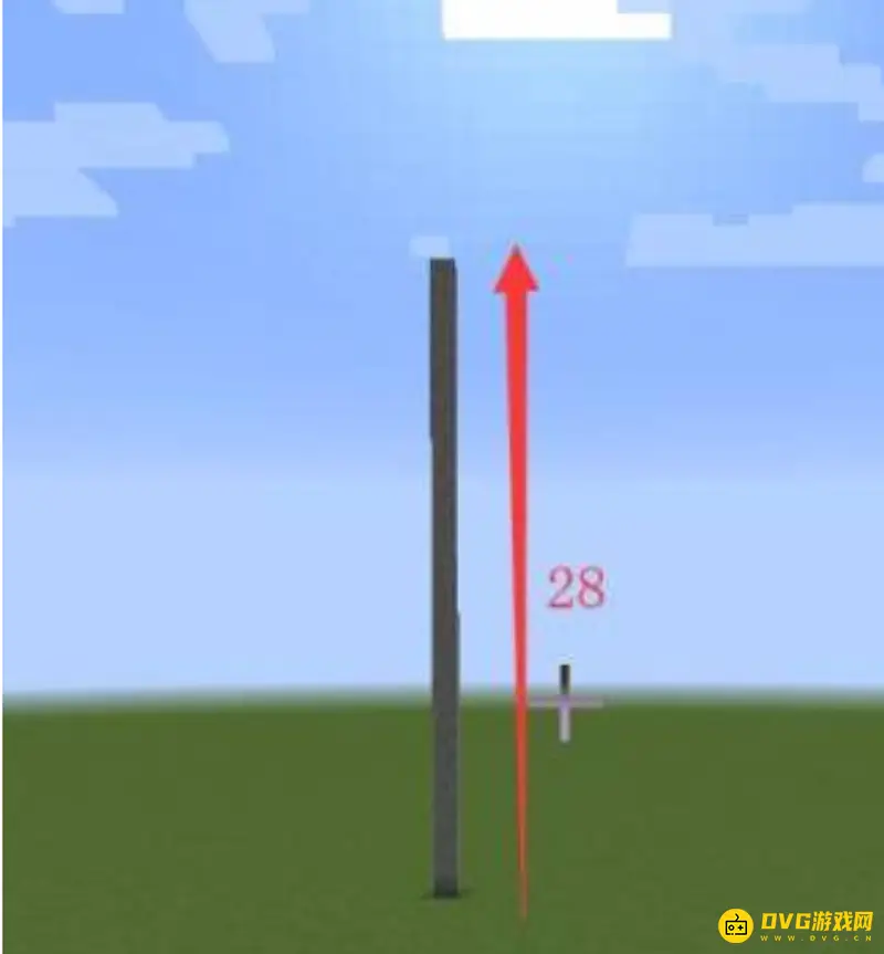 1.用任意方块搭建一个高28格的柱子,这样保证怪物一定会被摔死。