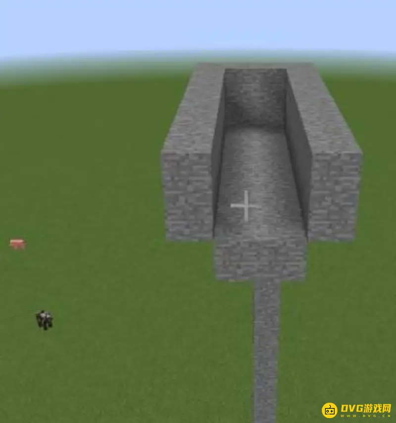 3.然后用石头将两边分别提高2格的高度形成一个凹形。