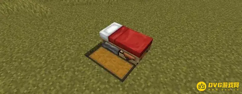 2、接着在工作台和熔炉上面放上一张床,这样就拥有了睡觉的功能。