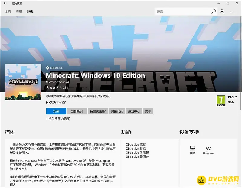 3.可以接上一步骤中的要求,打开windows 10 商店,搜索Minecraft,购买或者下载。