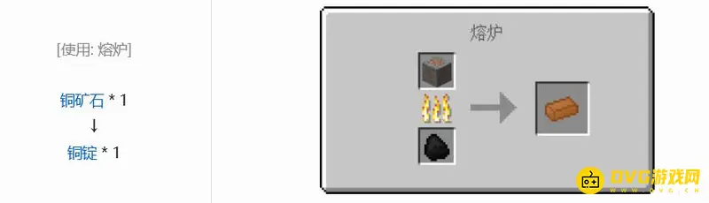 铜矿的作用就是合成铜锭,一个铜矿在熔炉当中断烧后可以得到一个铜锭,想要采集铜矿至少要铁镐级别及以上的镐子才能采集。