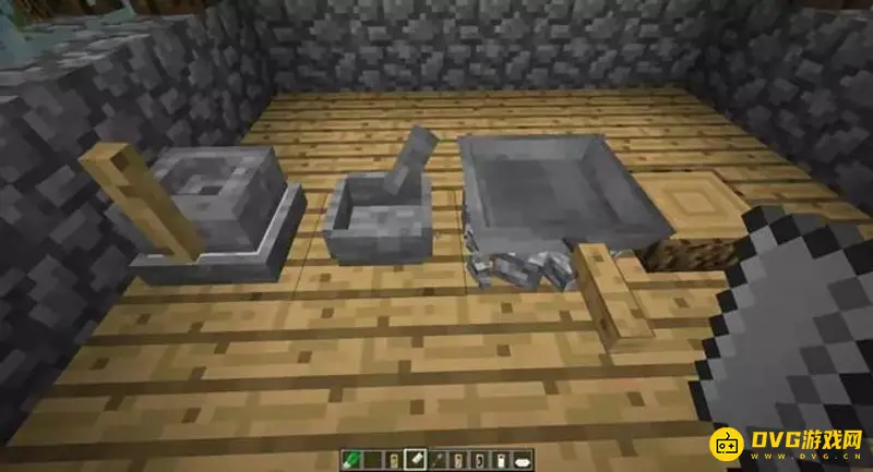 3、食材预备好后就能预备道具了,用木手柄和铁能组合种类繁多的煮饭道具