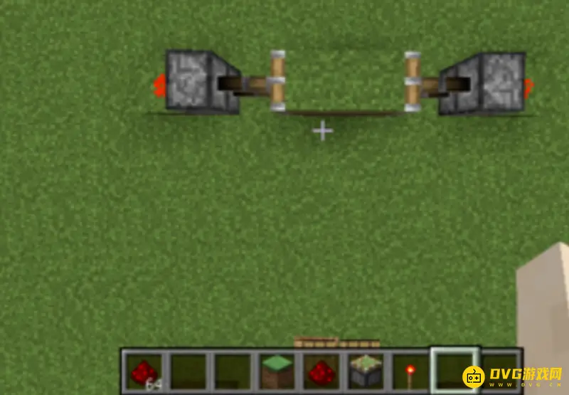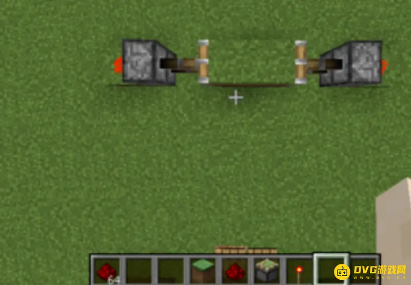 7.在中间两侧每侧都放置两个粘性活塞,并且放置上方块。如图所示