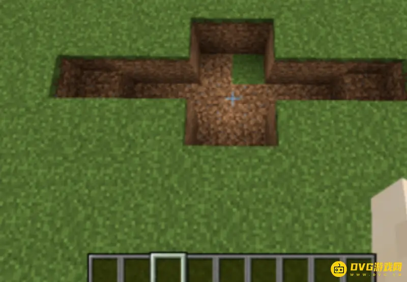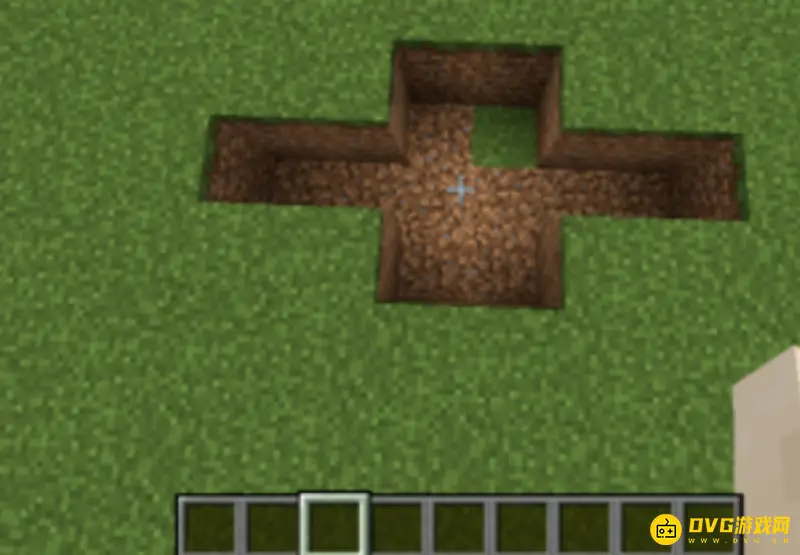 1.先挖一个高2X宽3格长2格的坑然后在左右两侧挖一个长2X高2的格的坑。如图所示