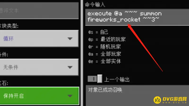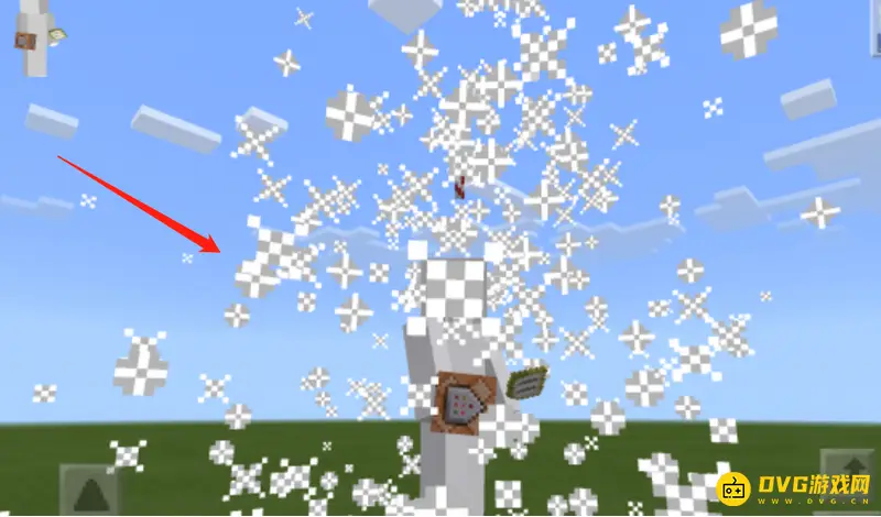 2、然后输入命令“/particle <名称><速度><数量>[玩家;实体]”。(/particle 粒子名称 wx wy wz 粒子数量)首先名称是指你输入的粒子效果,总共的效果有30多种。