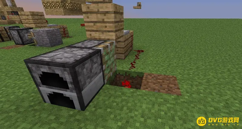 2.再放上四个向上的粘性活塞,并且在活塞上面放上实体方块。