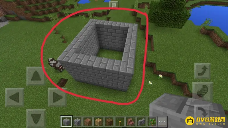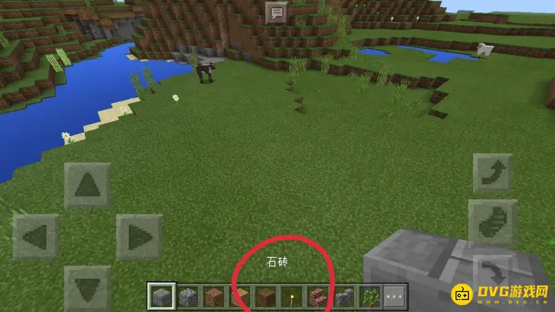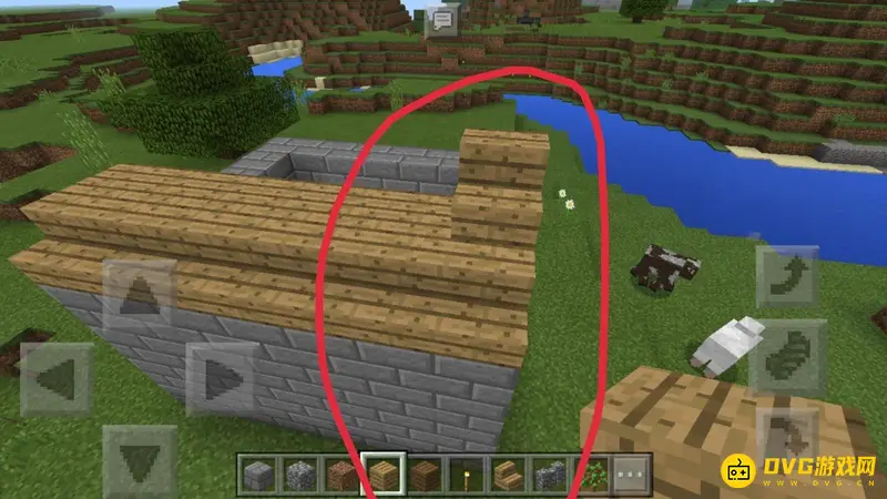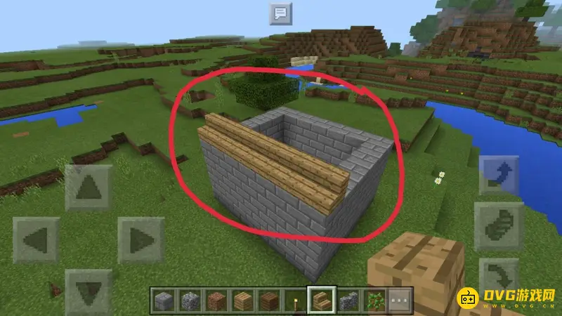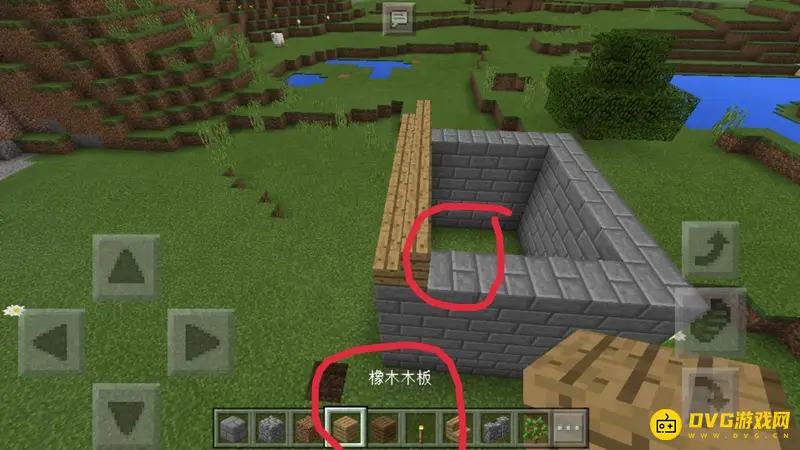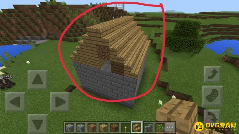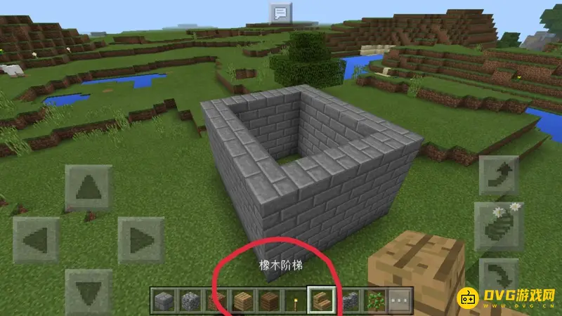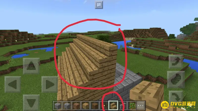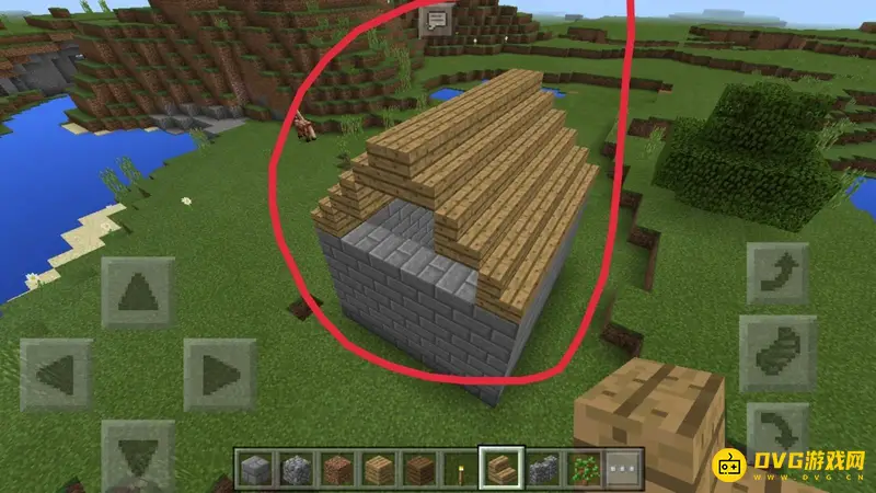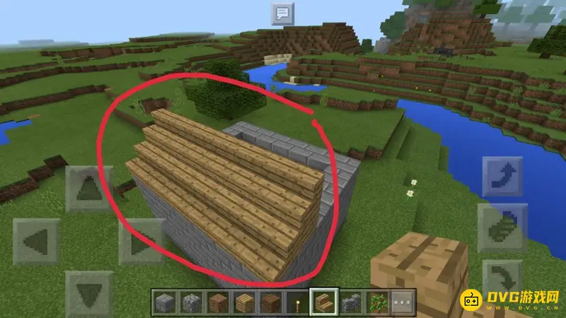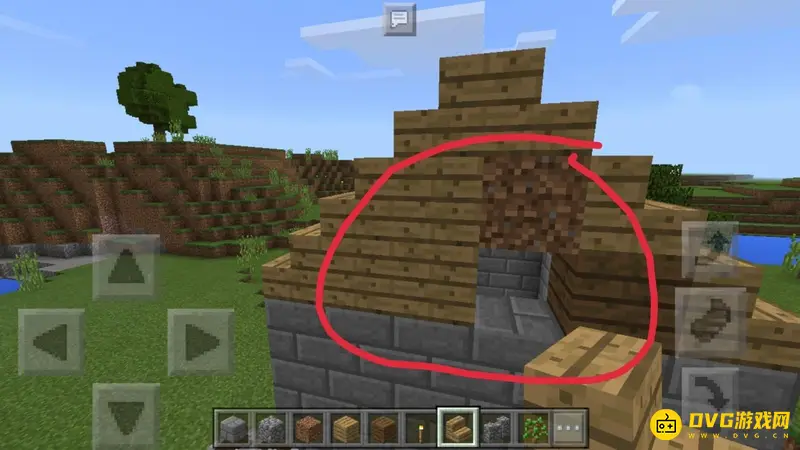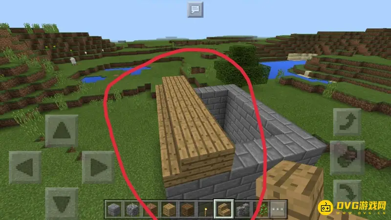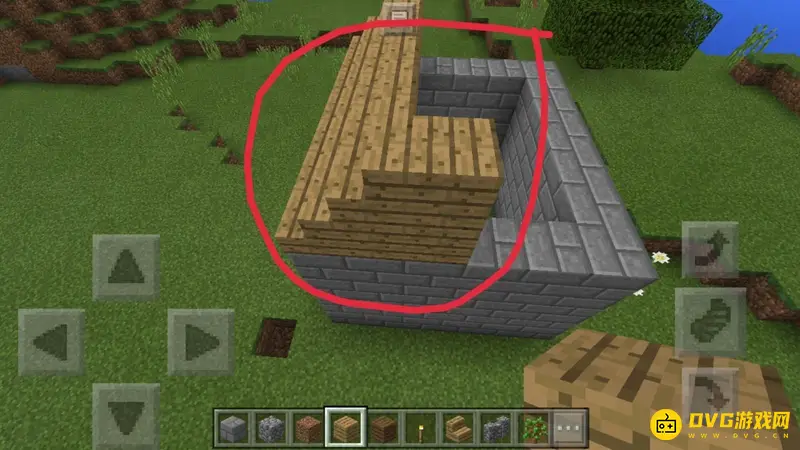6、找到像木木板,把它摆放在像木阶梯后面的石砖块上