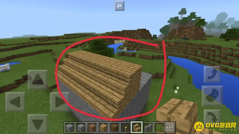 12、然后再把像木阶梯搭在像木木板上,这里屋顶的一半就已经搭建完毕。