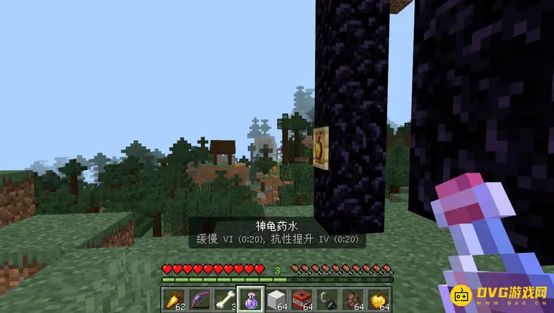 1,首先我们打开创造模式,拿取一瓶神龟药水,然后右键喝药水。