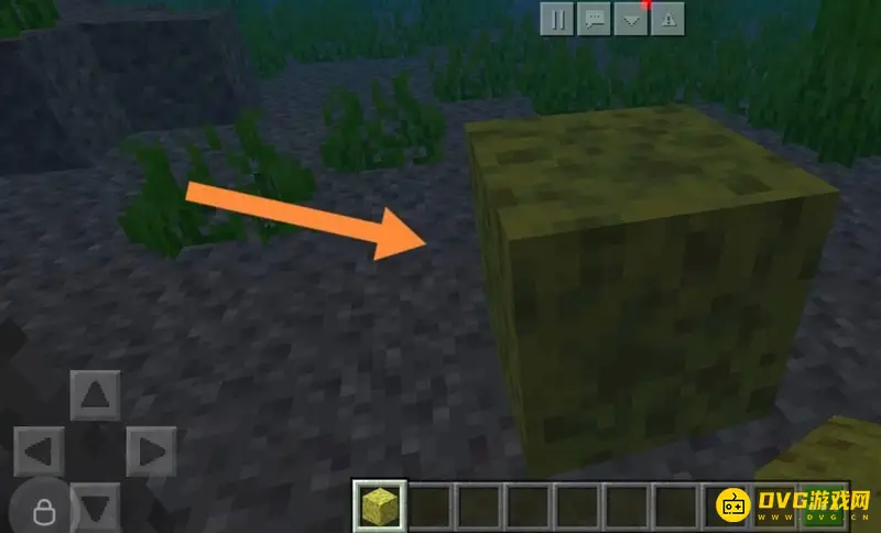 2、进入神殿后,在海底神殿里面可以看到海绵,再使用工具即可挖得海绵,如下图: