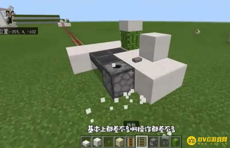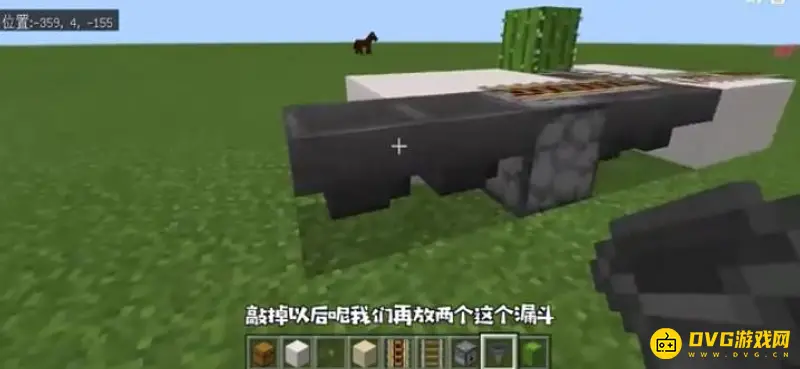 3.把发射器边上的方块敲掉换成漏斗安上去。