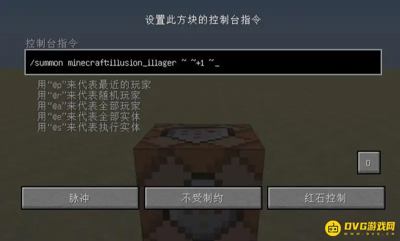 7、右键按钮,然后在命令方块上面召唤出一个幻术师。