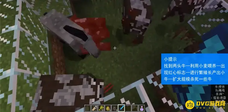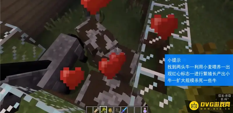 2.用小麦分别喂养两头“成年牛”,会出现“红心”标志,之后会进行繁殖。