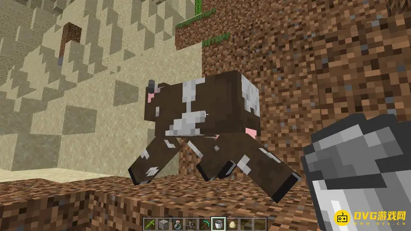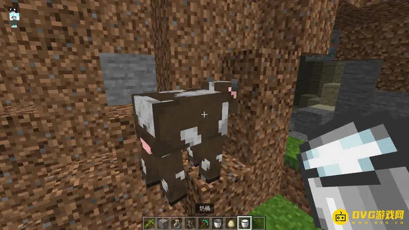 1,首先我们需要找到一头牛、哞菇或山羊,我们拿着桶对着牛点击鼠标右键。