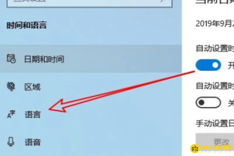 3、在打开的时间和语言窗口,点击左侧边栏的“语言”菜单项。