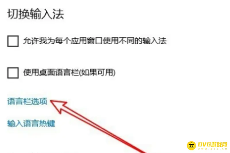 6、高级键盘设置页面中,点击语言栏选项的快捷连接。