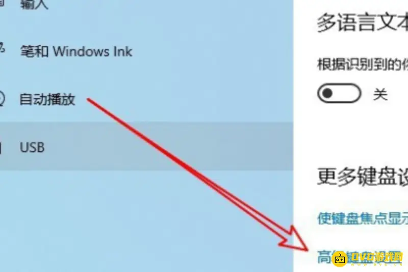 5、接着在打开的页面中点击高级键盘设置到快捷链接。