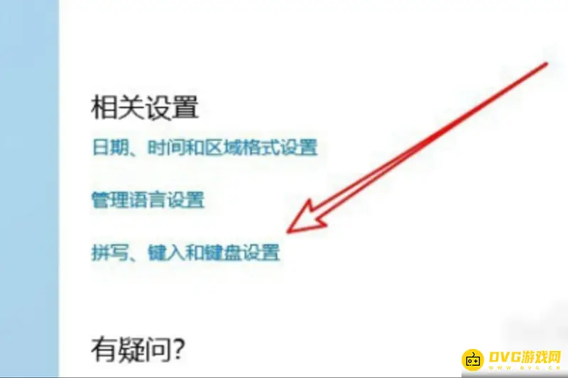4、在右侧窗口我们点击拼写、键入和键盘设置的快捷连接。